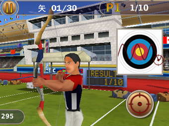 陸上競技: Athleticsを起動し、メニュー画面の「新しいシングルイベント」から、「100メートル」「走り幅跳び」「アーチェリー」の3種類の競技が無料で選べます。(アドオンを85円で購入すれば、遊べる競技が広がります。)競技選択画面の右側でコンピューター又はもう1人のプレイヤーと一緒にプレイするかを選択でき、また画面右下で自分が操作するオリンピック選手の国を30か国から選べるので、日本に限らず自分の憧れている国のオリンピック選手になる気分が味わえます。
